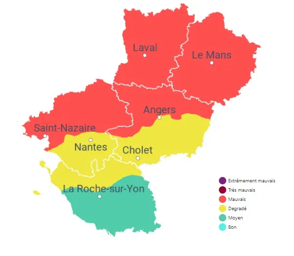 Cet épisode de pollution devrait par ailleurs s'étendre progressivement sur une partie des Pays de la Loire ce weekend. Selon Air Pays de la Loire, ce vendredi, il concerne essentiellement la Mayenne et la Sarthe, mais devrait s'étendre demain samedi à la Loire-Atlantique et au Maine-et-Loire.
